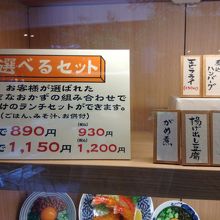 おかずを2or3品まで選べる定食メニューがお得です。塩サバ、トンカツ、チキン南蛮、唐揚げ、がめに、ハンバーグ、野菜炒め、餃子、スタミナ納豆、茄子味噌などが選べます。ボリュームがあるので、3品選んで1200円はお得です。