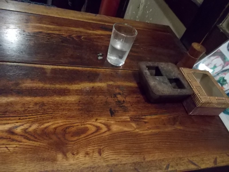 門構えも店内も、古民家(と言うと聞こえは良いのですが、単に「古い」と言う意味)の風情で、店内も決して洒落ていません。むしろ雑然としており、囲炉裏があるのには驚かされます。