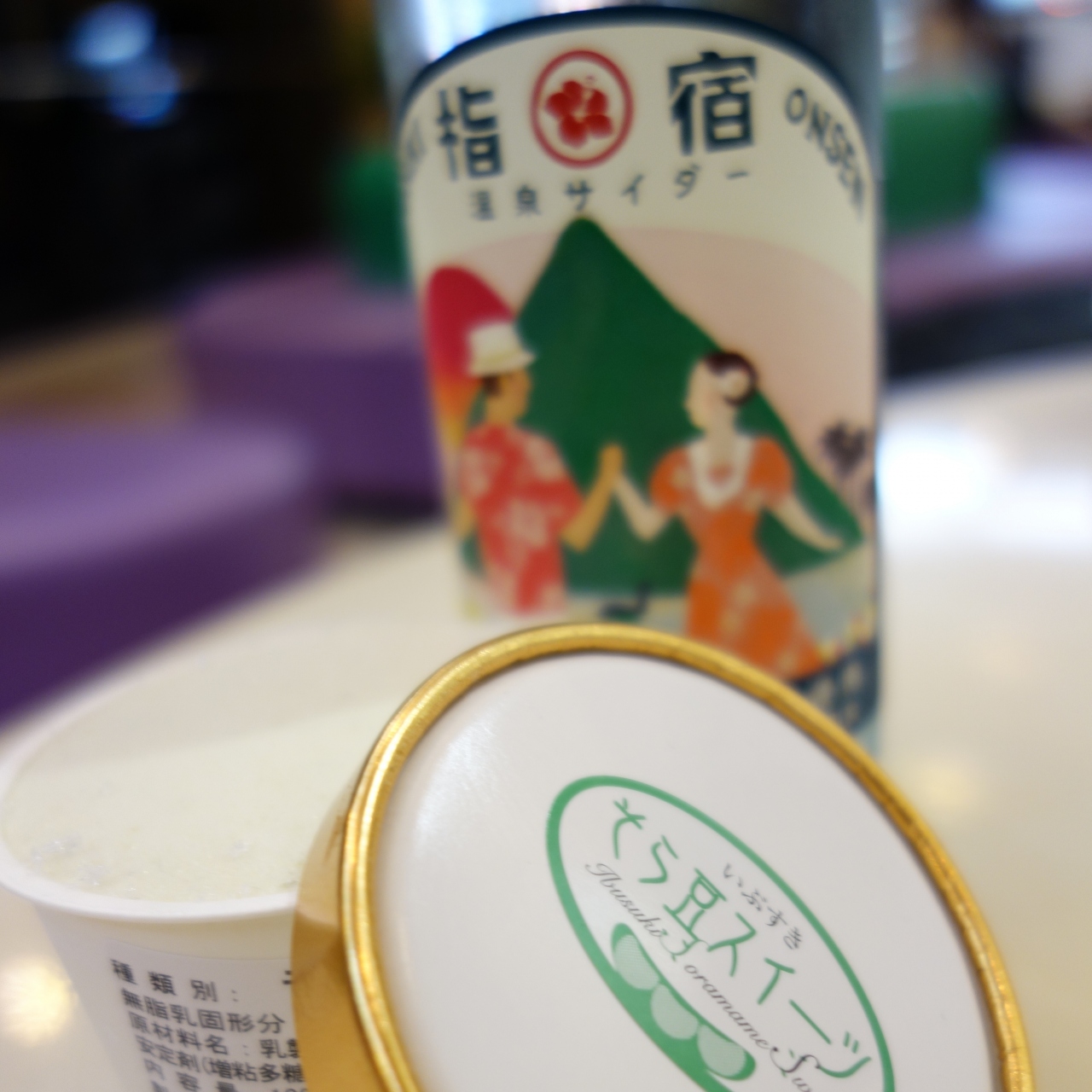砂から出たら、すぐに本館の大浴場へ。砂を落として湯に浸かれば、2度目の極楽タイム。もちろんお湯は温泉だ。風呂から出たら上階の湯上がり処で、特産のそら豆アイスやサイダーをグビグビやろう。