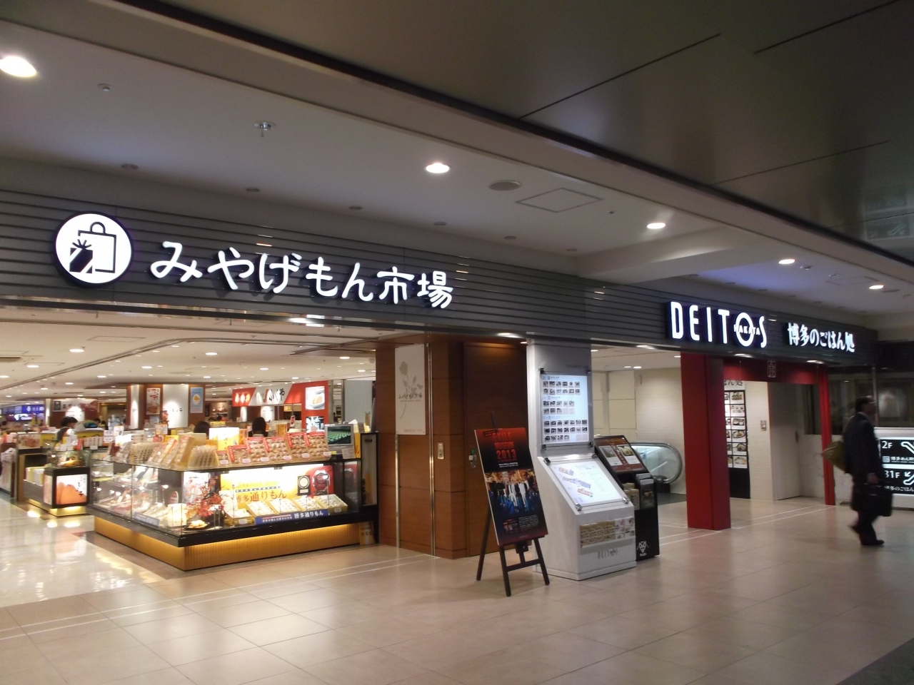 JRコンコースから直結しています。入口にみやげもん市場・博多のごはん処とあるように旅人にとっては利用勝手がよいところです。