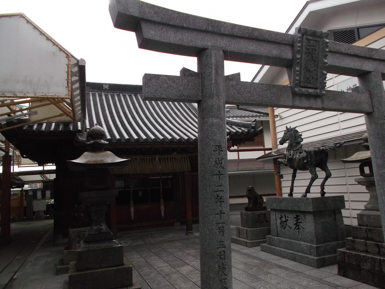 境内には力石や馬の銅像が奉納されています。短い参道際にある馬の銅像は躍動感あるもので何か深い意味があるのかはわかりませんでしたが目立ちます。