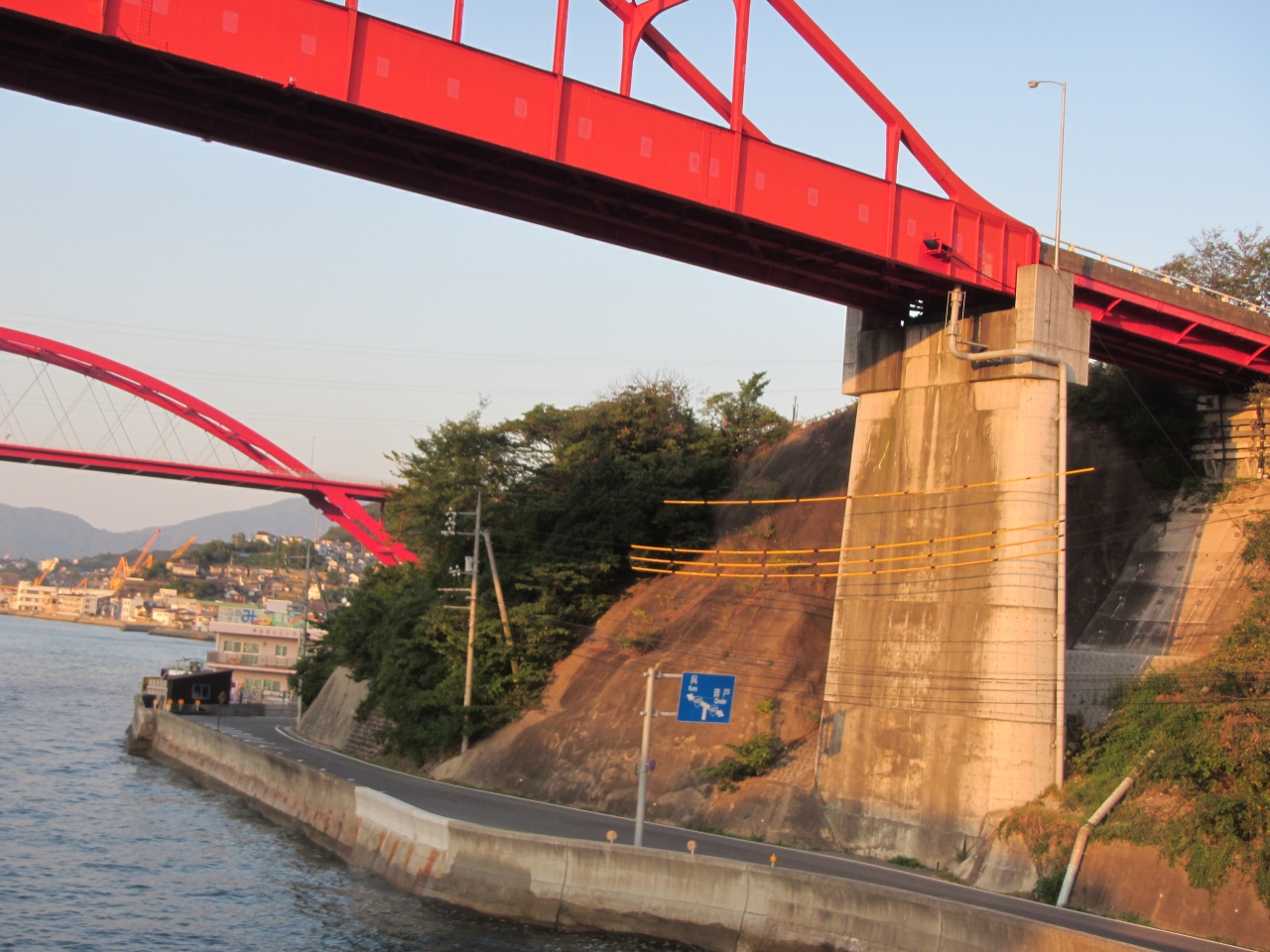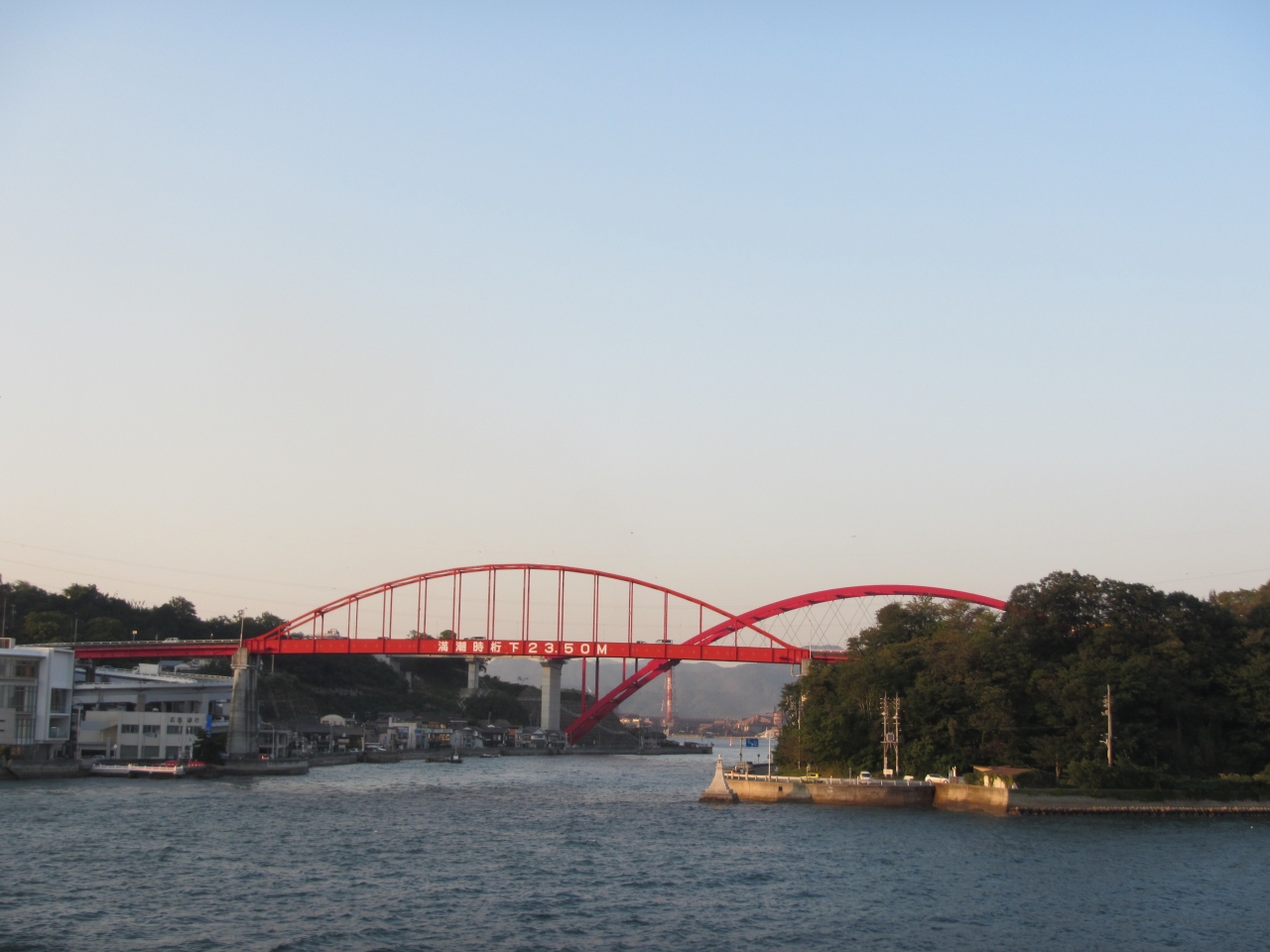音戸ノ瀬戸は、やっぱり船で実際に通ってみないと、実感できません。松山−呉-広島の石崎汽船クルーズフェリーで通りました。船は、音戸ノ瀬戸の手前で一旦停止しました。何かなと思っていると、音戸ノ瀬戸から2隻の船が連なって来ました。音戸ノ瀬戸は狭くて、船のすれ違いは出来ないので、交互一方通行になっていたのでした。