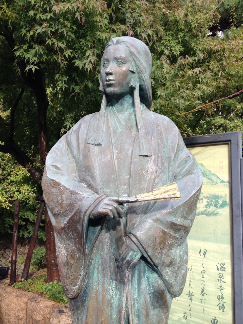 赤い色が印象的なねね橋のたもとにあるねね像。有馬温泉街の中心近くにあり、みなさん一度は見ているでしょう。有馬といえば秀吉で有名ですが、秀吉像はないですね。