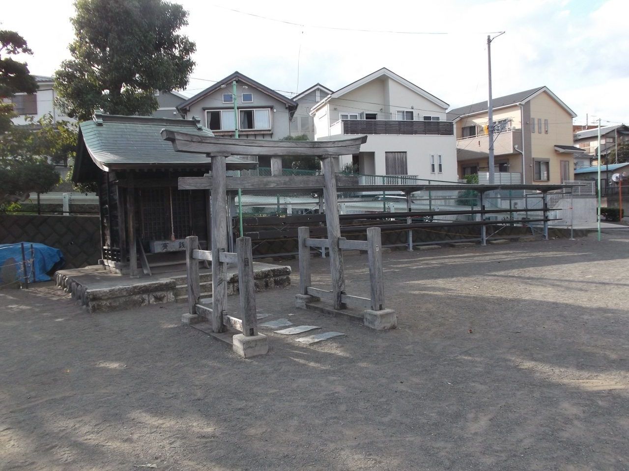 湘南ライフタウンの開発された住宅街に一段高く石垣で整備されたところに鎮座しています。古い木の鳥居に小さめな社殿があります。北の(谷)弁天さまとも呼ばれています。古い大庭の人々にとっては謂れのある神社のようです。言い伝えでは、昔の統治者に苦しめられた農民が弁財天を勧請したとあります。