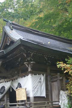 戸隠山は、天の岩戸の伝説の地で、岩戸を開けた天手力雄命(あめのたぢからおのみこと)が祭神とのことで、手前に九頭竜神社があり、背後には戸隠山の岩山が見えています。神仏混交の頃は、参道の両側に寺院が並んでいたようですが、遺構はあまり残っていません。
