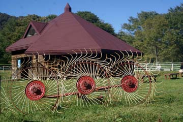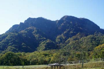 大洞沢に沿って下っていくと、だんだんと傾斜が緩やかになり、橋で対岸に渡った先に牧場の境の柵があり、人が通れるだけの幅の通路があります。広々とした牧場の中を進むと、少し離れたところ牛がいて、再び柵を通ると乗馬体験が出来る観光牧場になっています。牧場から振り返ると迫力のある戸隠山が聳えています。