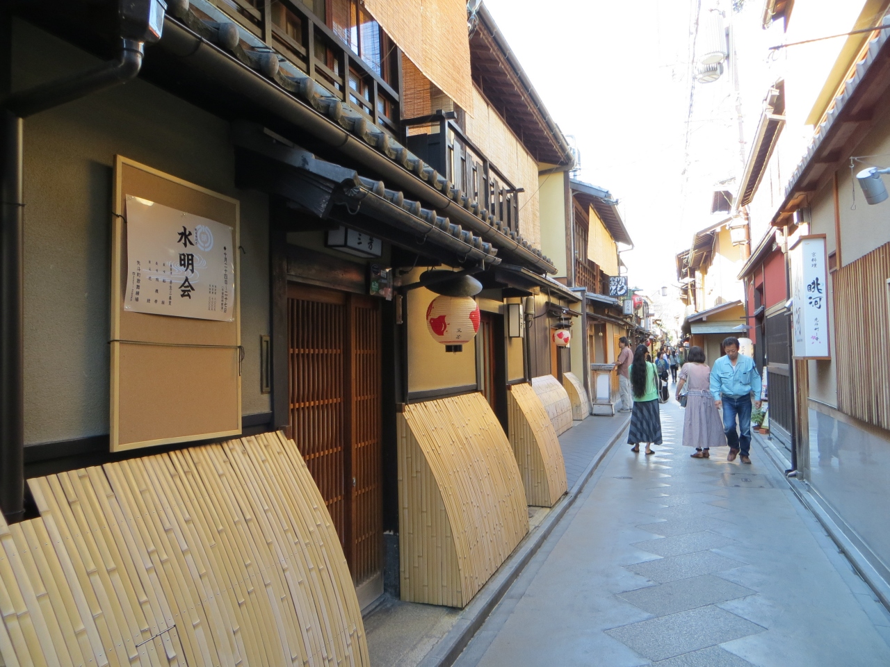 京都っぽい所の代表格です。風情があってしっとり。先斗町と言えば夜のイメージですが、日中は人も少なくそぞろ歩きに最適な場所です。細い道の両側にレストランがずらりと並んでいて食べる場所を見つけるにも事欠きません。5月から9月は鴨川側にあるほとんどのレストランは川床になります。5月と9月はランチも川床が楽しめます。