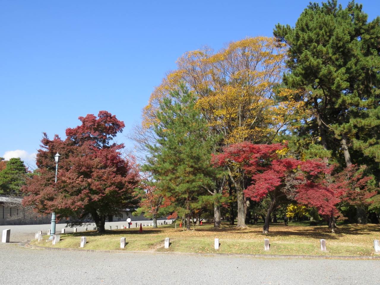 京都御所は広大な敷地にあります。とても綺麗に整備されていて、いつ行っても清々しい憩いの場所です。四季折々の自然や風景が楽しめます。お弁当を持ってランチに来る人もたくさんいます。敷地は生活道路でもあり北から南から、自転車でスルーする多くの地元の人たちで自然に細い自転車道路が出来ています。