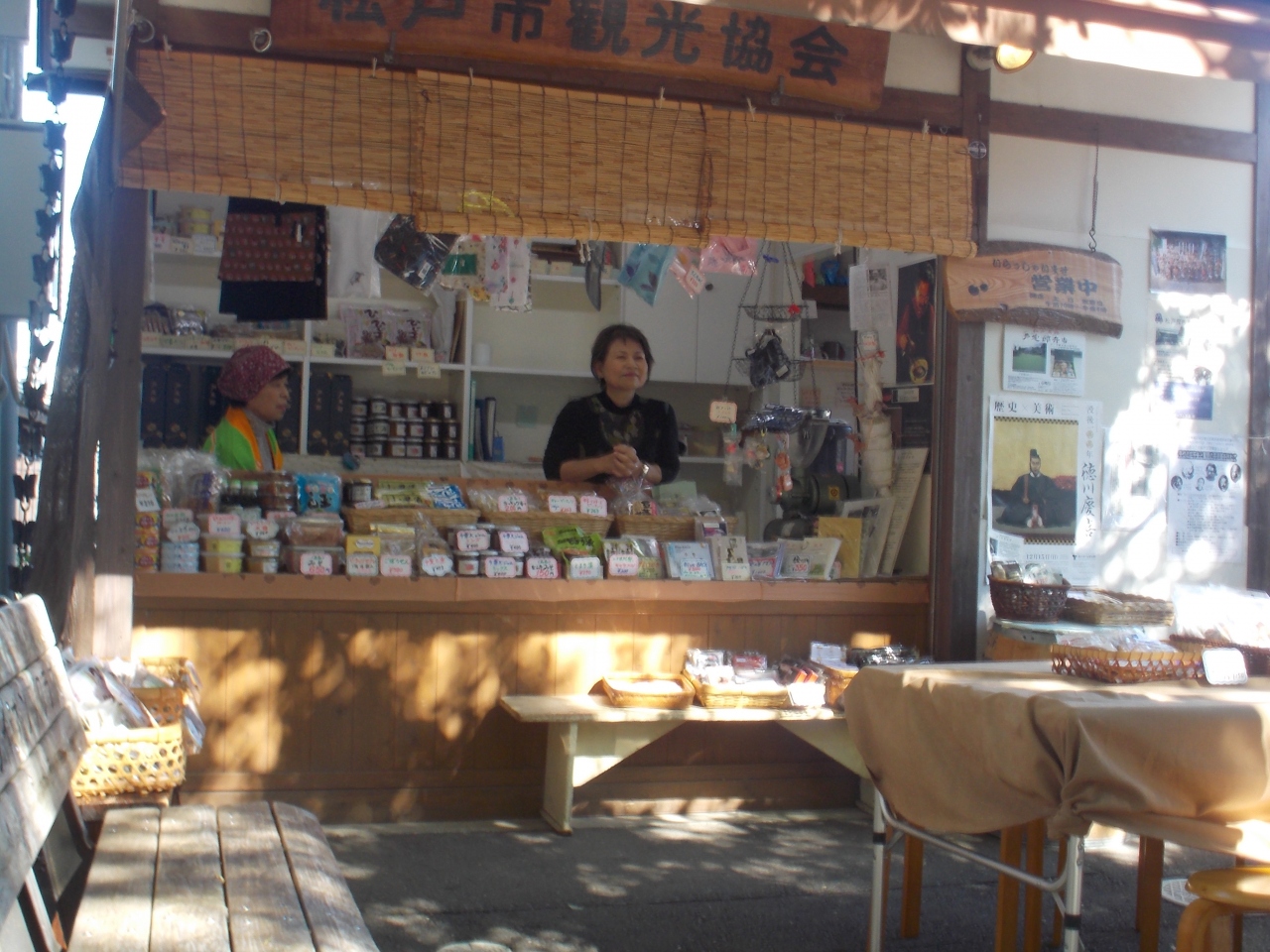 土曜、日曜、祝日に戸定定にいけば、階段の左側に駐車場があり、門の入口には、松戸の名産品を販売している売店があります。 売店の外では、野菜も販売しているので、普通のスーパーで買うより珍しいものが置いてあるし、安く買えます。