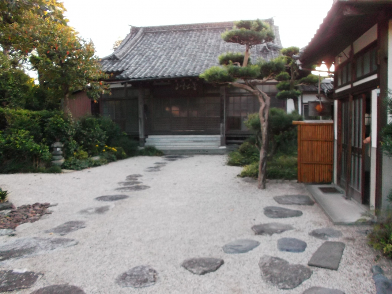駐車場の奥に境内があります。白(砂ジャリ?)い飛び石の前庭で本堂は質素です。石伝いに渡り合唱終え写真を撮っていましたら庫裡から住職が来られお茶でもと声を掛けられました。有難いことですが時間的余裕がないものでしたので遠慮させていただきました。