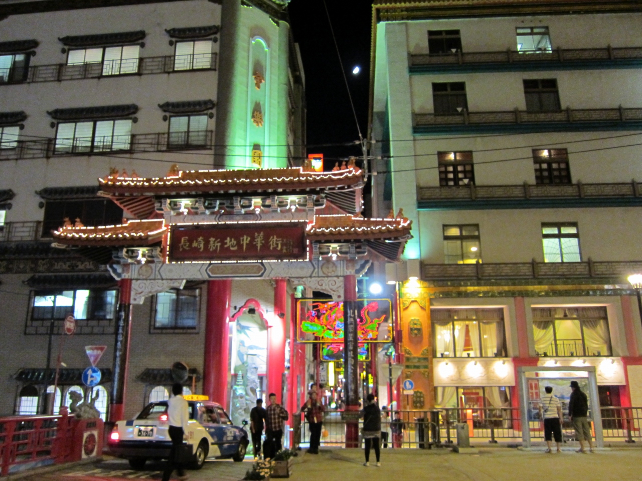 長崎中華街の東西南北の正確な位置にあるそうです。風水に基づくとか。中華街はそんなに大きくないので全てを見るのもたやすいです。門の裏側には東門では青龍、西門は白虎、北門は玄武(亀と蛇)、南門は朱雀と門を守る神が彫られているとのこと。