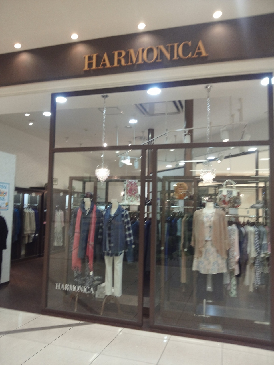 ハーモニカは、懐かしさの中にトレンドのエッセンスをプラスした、大人のフェミニンスタイルを提案しているそうです。ショップ内は、地味ーな服が揃っていました。けばけばしてない全く派手では無い古めかしい感じでした。