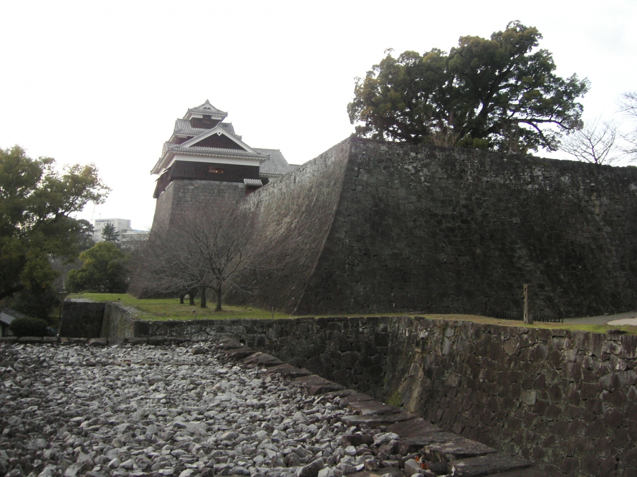 石垣の勾配も見事で、西南戦争で、西郷隆盛率いる薩軍が落とすことができなかった、難攻不落の城を実感できます。