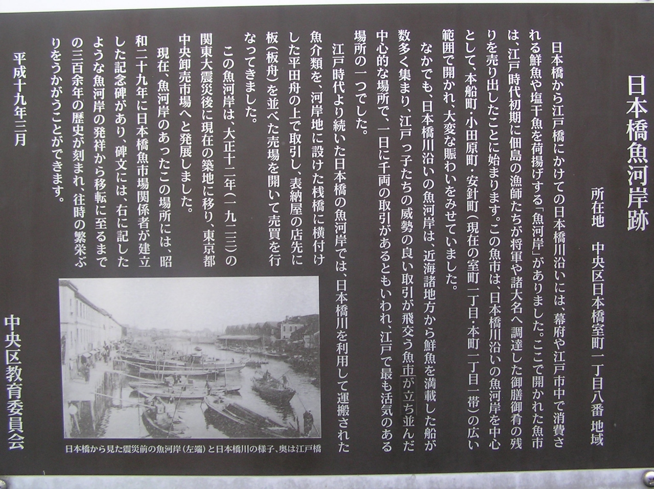 その後、この魚河岸は大正12年(1923年)の関東大震災により築地へ移転され、現在の東京都中央卸売市場へと発展していきました。