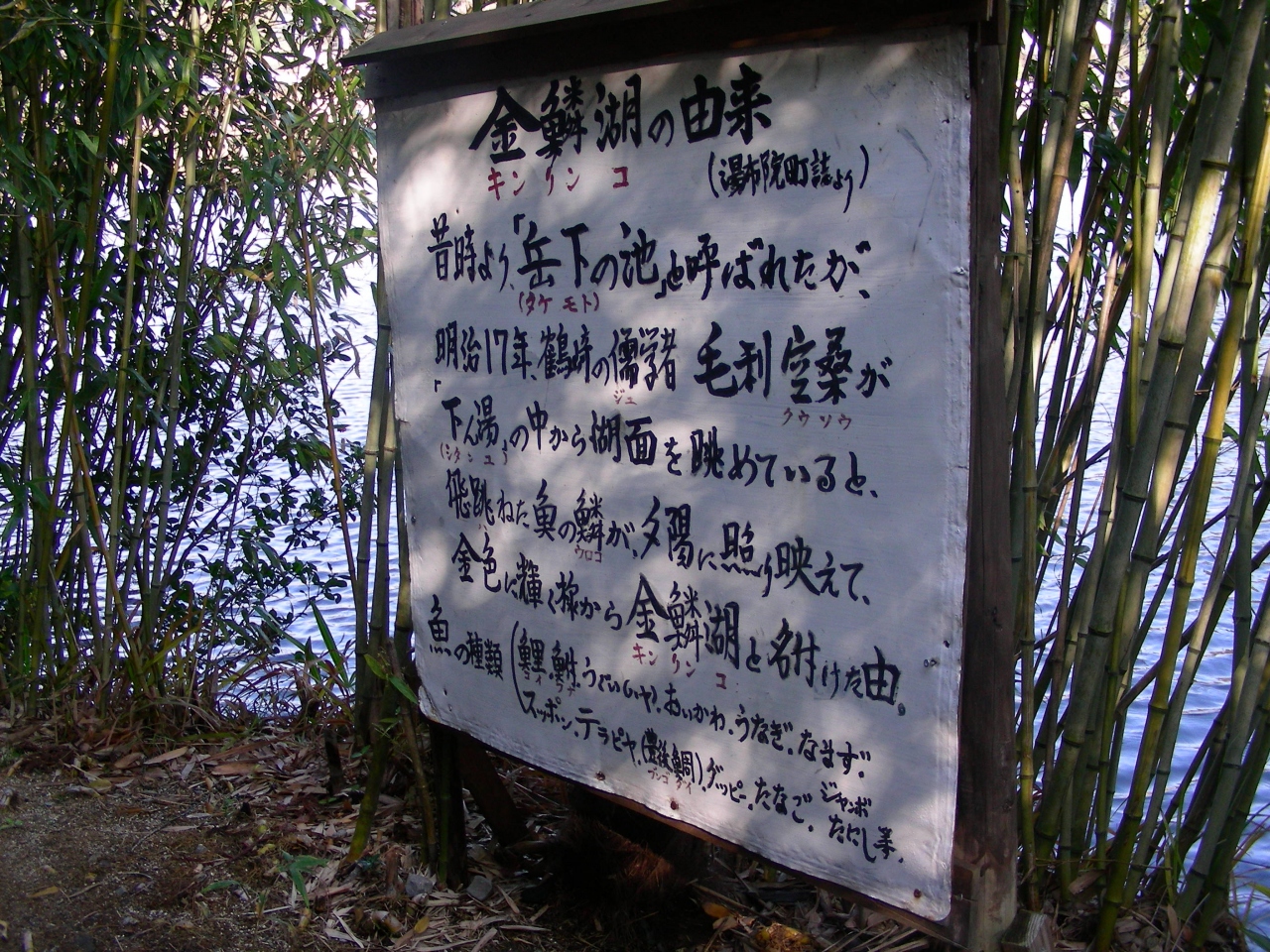 「何もなさ」が売りの由布院にある、なんてことのない池です。湖底から温泉が湧きだしており、冬季には温度差により湖面に霧が立ち込める幻想的な風景が見られるとのことですが、残念ながら見ることはできず。由布岳を望むことができるので、風のないときに鏡面のようになった湖に写る「逆さ由布岳」が見られれば良い被写体になるでしょうが、文字通り風があってウロコ状の波が立ちそれもかなわず。温泉の湧きだす湖にはティラピア、グッピー、ジャンボタニシなどの外来生物が住みついており、景観保護と自然保護について考えさせられる場でもありました。