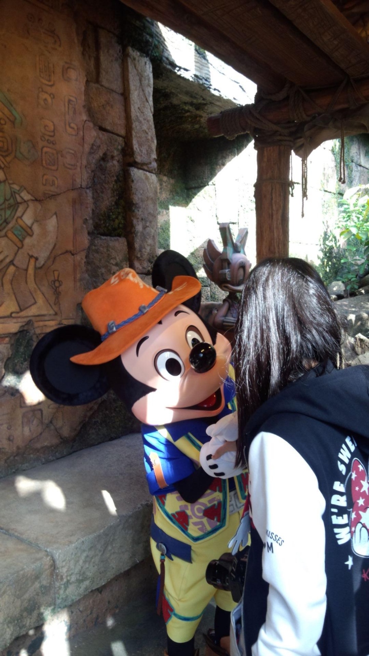 今回朝一で入園してトイマニのファストパスをゲットしてからミッキーのグリーティングに行ってみました。入り口からは最も離れたロストリバーデルタなので開園直後は混んでません。スタートも開園15分後からなのですが、何か一つ乗ってからでも余裕で10分待ちです。