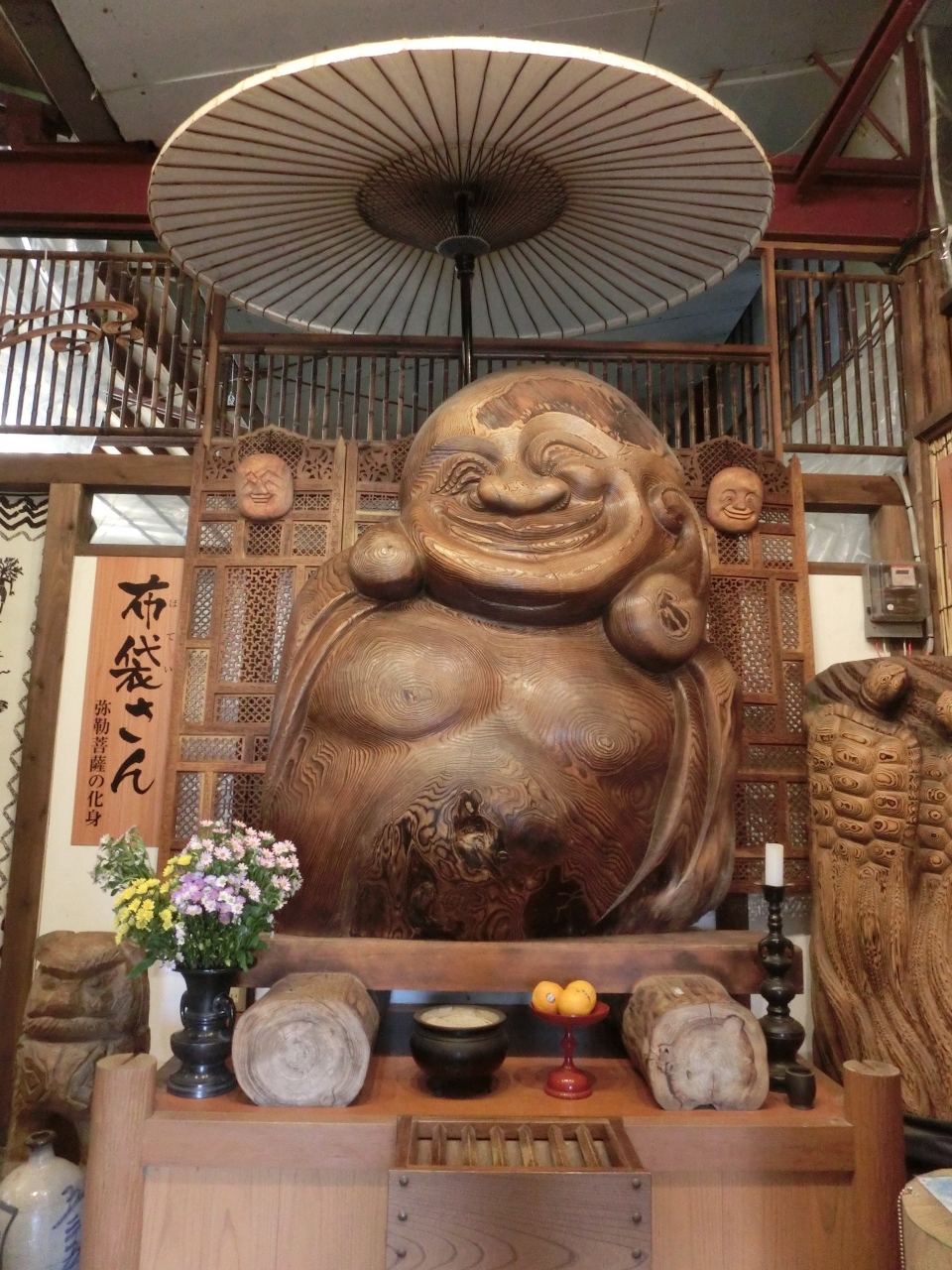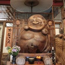 石橋を渡って入ってみると、中には七福神の布袋さんがいました!