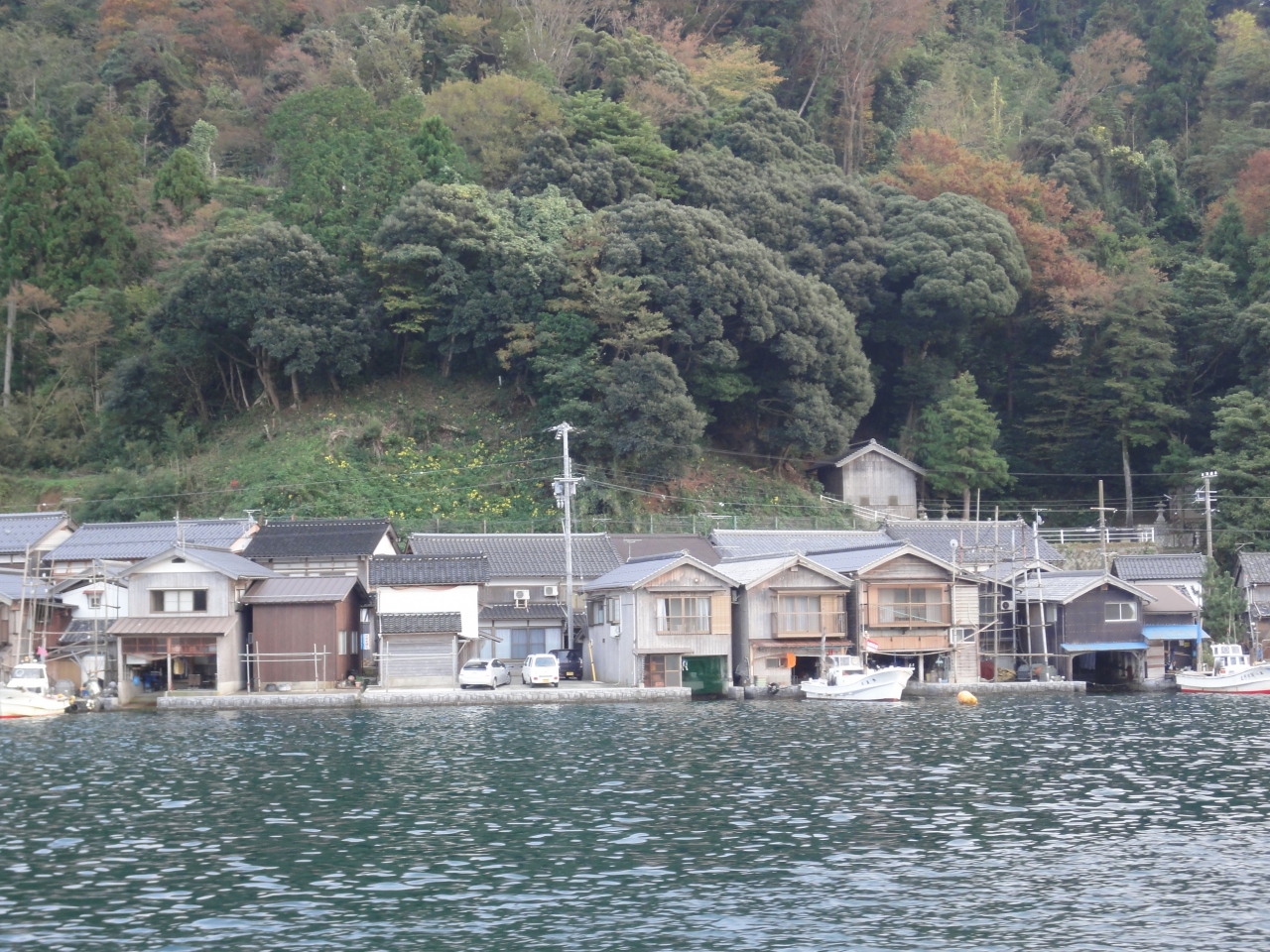 伊根湾めぐりの遊覧船にのって伊根の舟屋を見ました。家の一階が船着場になっているのにはびっくりしました。