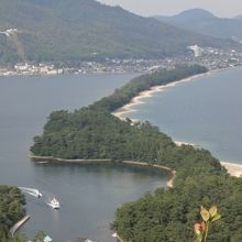 モーターボートで渡り、傘松公園から天橋立を見て、レンタサイクルで渡って帰ってきました。見る場所によって天橋立が龍の形に見えました。