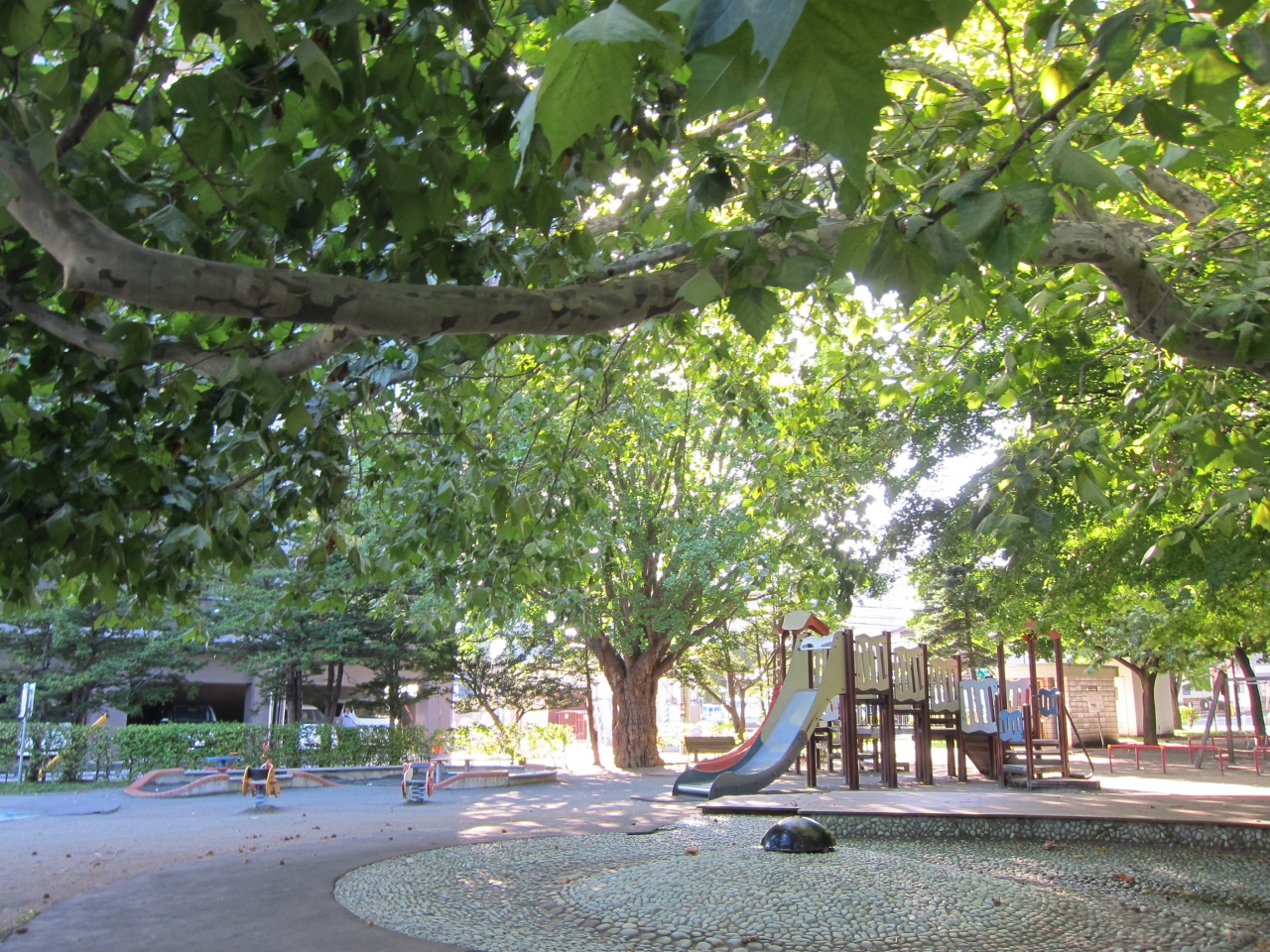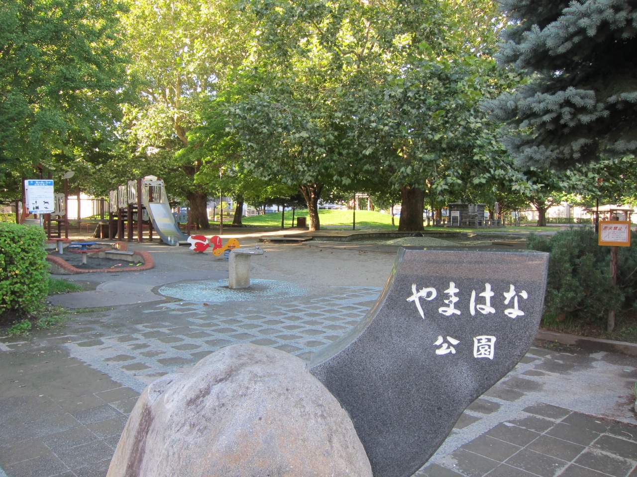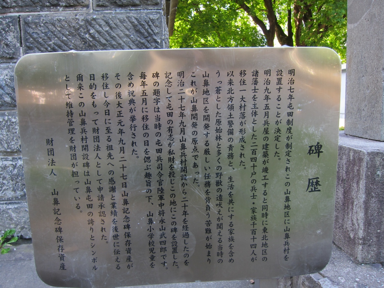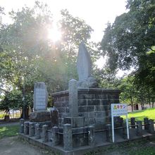 国道230号線、石山通の南14条のあたり、山鼻公園内にある碑です。公園の真ん中にある広場の前にあるのですぐ分かります。今では真夜中も車の通りが頻繁な街中の通り沿いにありますが、説明看板の昔の地図や写真などを見ると、街中の公園のこの同じ石碑が辺鄙な開拓地の一角にあったのが分かります。周囲の商業ビルやマンションなどが建ち、街が変わっていく変遷を見続けてきた碑なのですね。