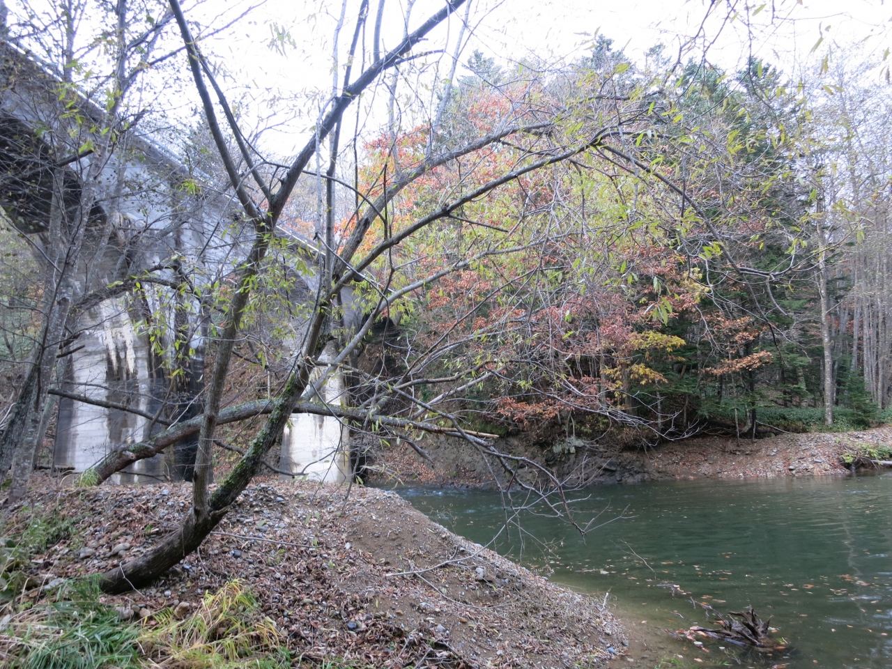 紅葉がきれいで10月初・中旬が見ごろ。タウシュベツ川橋梁は10月中旬から1月下旬まで完全水没。