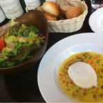 系列に五反田の人気ビストロ、ボノミーがあり2階のカフェではパンと料理をいただける。平日のランチタイムにはポーチドエッグ数種とサラダ、飲み物とパンが付きパンはお代わり可。価格は1000円~と五反田ではやや高級ながら料理にあうハード系のパンがおいしくて色々とパンが試せる。パン好きにはおすすめ。
