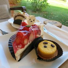 全体的にサイズが小さめですが、チーズケーキ以外のケーキも良いと思います。その中で一番ボリュームのありそうな、いちごタルト(\480円)を頼みました。秋の日を受け、紅葉が明るく輝くトテッポ通りを眺めながらカフェで食べました。ドリンクバー(\400円)を付けるとコーヒー、紅茶、それに桃のジュースなどを更に飲むことができます。