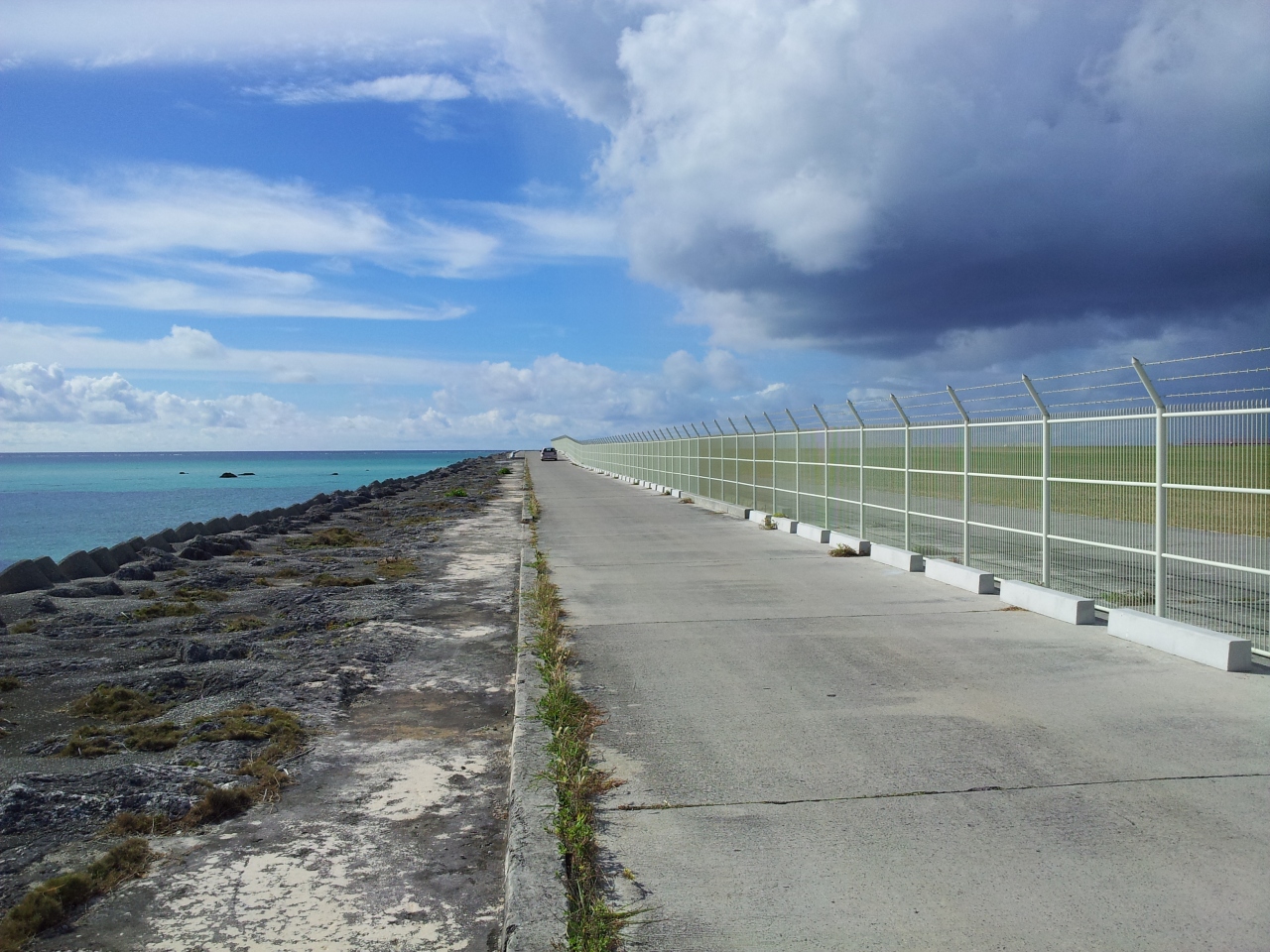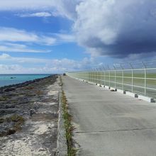 こちらは、専らパイロットの訓練に使用される飛行場です。旅客機の乗り入れはありません。昔は那覇市からの旅客機も飛んでいたと地元の方が話しておられ、当時は人口も現在より多かったということでした。付近は紺碧の海が広がり、絶景です。一度だけ、タッチアンドゴーを見たことがありますが、頻繁にやっているわけではないようです。