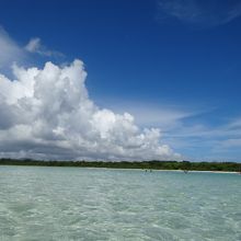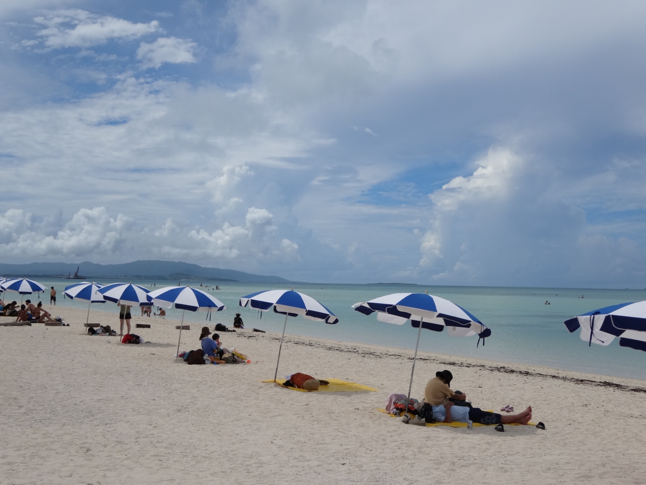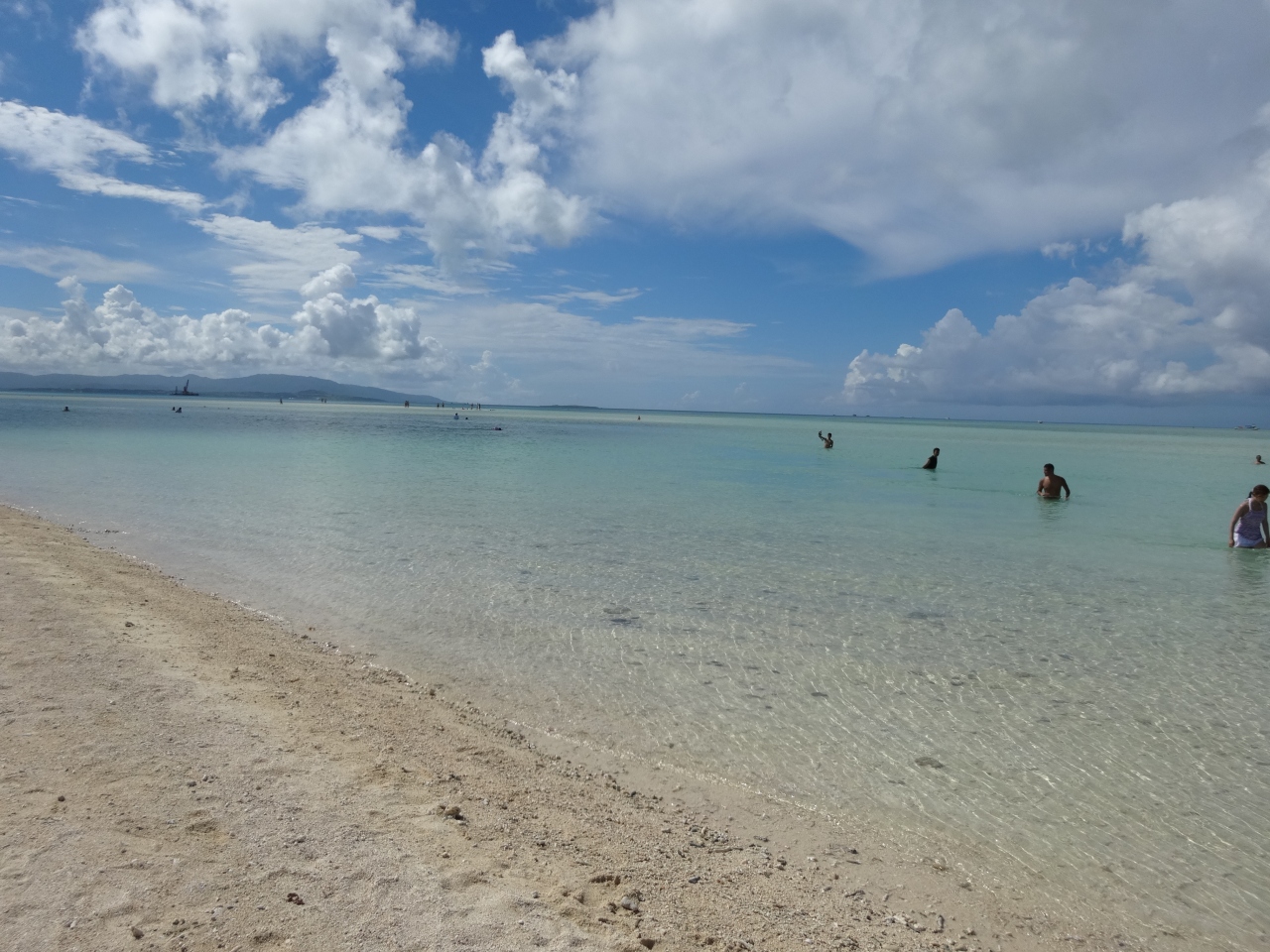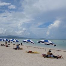 透明度がすごく浅くて自分の足が常に海面から確認できます。砂、海、空、海岸のパラソルがきれいでどこを写真で撮っても絵になるし、何時間でもいられると思いました。泳げなくても浅いので楽しめます。