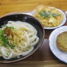 香川のうどん屋は平日の昼の2~3時間くらいしか営業していないところが多く、車で行かないと到達困難なお店が多いため、観光客には非常に行きにくいですが、この上原屋本店は日曜以外の9時から16時まで営業していて、観光名所の栗林公園から徒歩で5分くらい、また琴電琴平線の栗林公園駅からでも徒歩で10分くらいで行くことができるので、便利です。うどんを注文してから自分でもう一度お湯に通したり、だしを自分で入れたりする香川に多いセルフ方式のうどん屋です。かけうどん小が220円、大が320円でした。天ぷらなどもたくさん種類がありました。営業時間が長く、立地がいいので、行きやすいお店なので、おすすめできます。