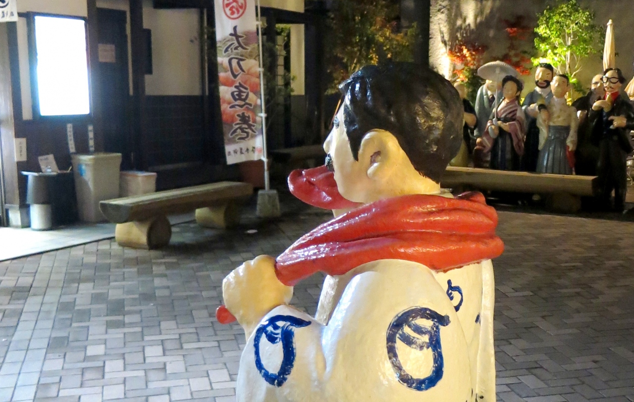 その前のベンチに座ると、道後温泉本館が良く見えました。