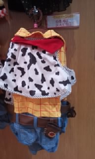 老犬には犬の乳母車もいいなぁ。歩いてお散歩できなくなったら、乳母車に乗せてお散歩しよう。犬のお洋服のみでなくコスプレ衣装がたくさんありました。ディズニーのキャラクターや動物ものまでいろいろあります。人間とおそろいで仮装できそうです。
