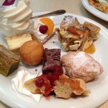 デザートの盛り合せですね。ワッフルやシュークリーム等々、様々なものが用意されています。特に、アイスコーヒにソフトクリームを乗せてコーヒフロートにしてみてください