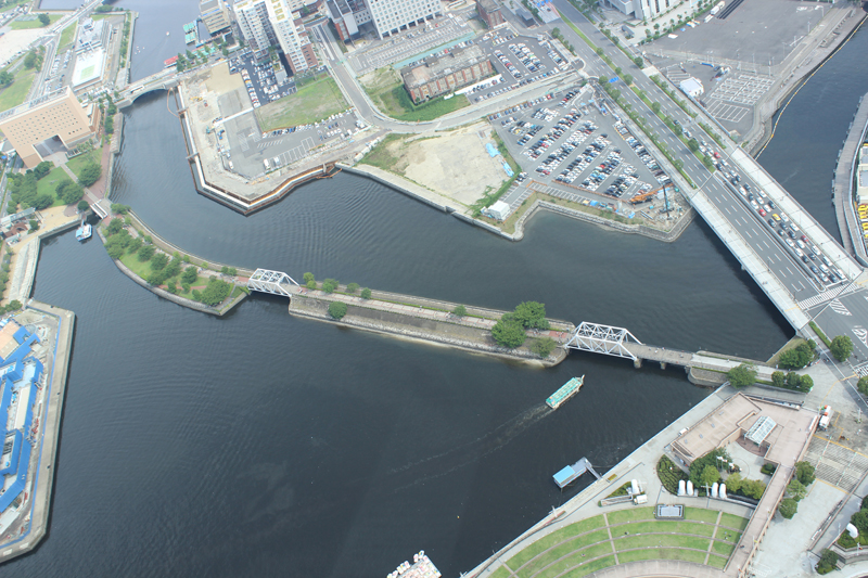 桜木町から赤レンガ倉庫方面の往復にときどき歩きます。もともと赤レンガ倉庫に行く鉄道だったところが廃線になってそれを残したまま、遊歩道になっています。大岡川の河口付近や運河パークの中を通っています。ナビオスの中を通り抜けますが、通り抜けたあと振り向くと、ランドマークタワーが見え、ナビオスが額縁のようです。