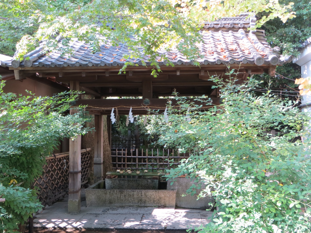 京都御所の秋の一般公開を見た後、境内の井戸水「染井の水」を汲みに寄りました。京都御所の東側にあって、御所一般公開の入口からは御苑を横切る感じで10分程度歩きます。境内はひっそりとしていて、境内にはまだ萩が残っていました。観光客もほとんどおらず、初秋の空気を感じながら社殿の階段に座って一休み。