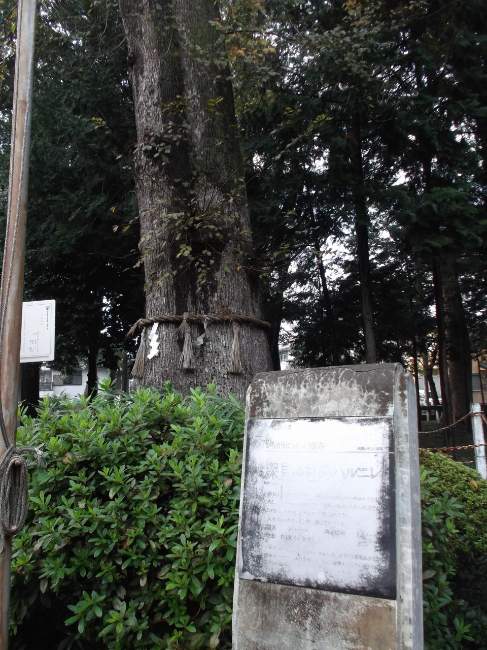 大和の深見神社の境内(本堂脇・靖国社横)に聳えています。