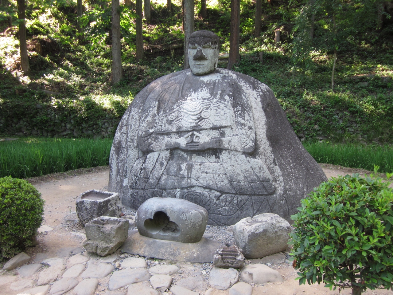 帰りにあの岡本太郎は「こんな面白いもの見たことがない」と絶賛した、万治の石仏を見て帰ることにしました。諏訪大社のすぐ隣にあるその石仏はあって、大きな岩に素朴な仏様の頭を載せただけのものですが、実にユニークで思わず笑みがこぼれてしまいました。
