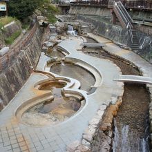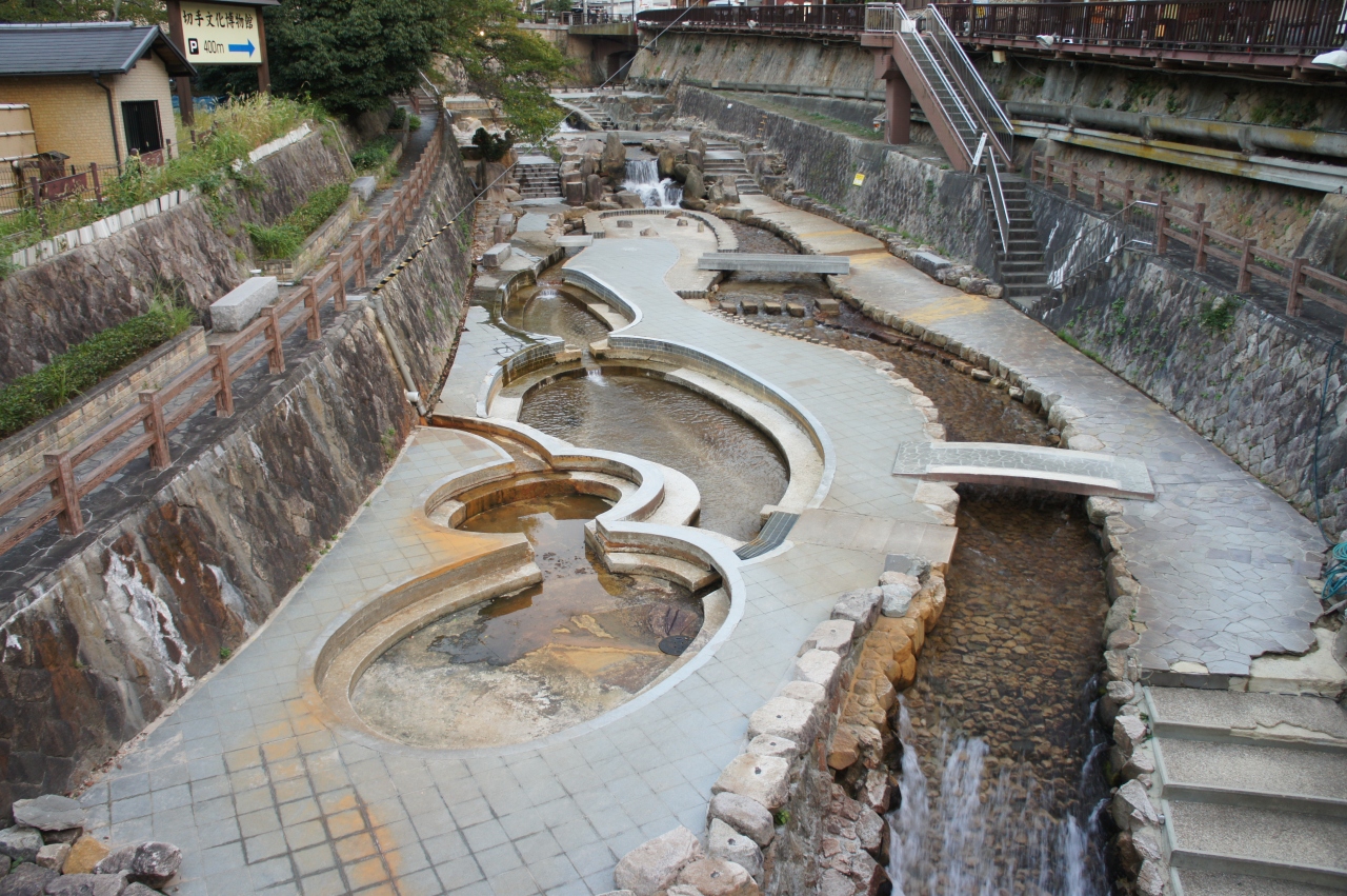 有馬川親水公園は、駅から有馬温泉の中心に向かって登って行く途中。太閤橋とねねの橋の間に整備された公園です。しかし、最近、鉄砲水みたいに川に流されて亡くなる事故が起きているので、正直言えば、ちょっと、心配になるような地形ではあります。