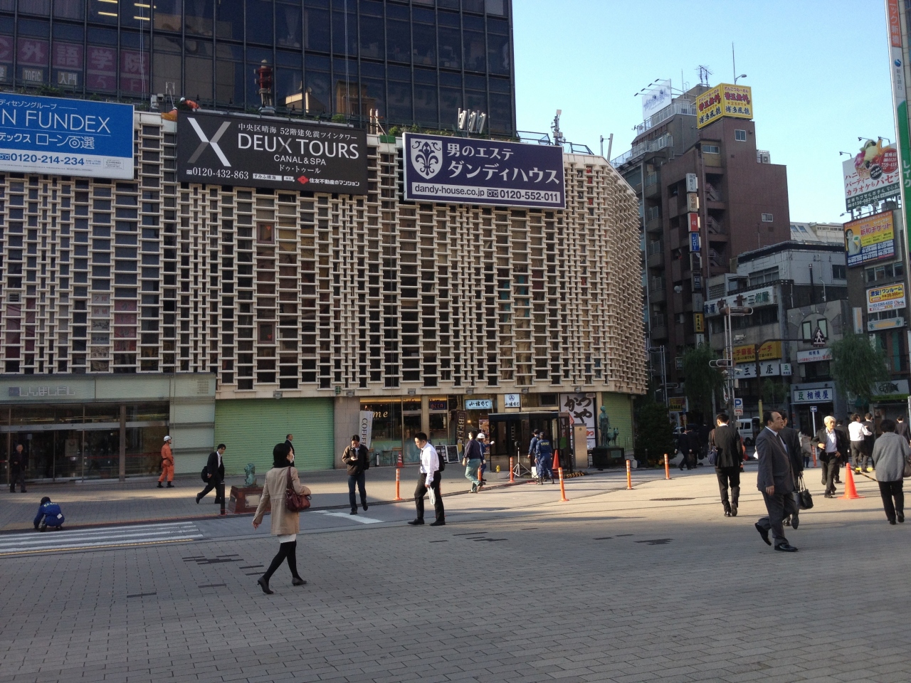 新橋という土地柄、スーツ姿の男性ばかりが目立ちます。