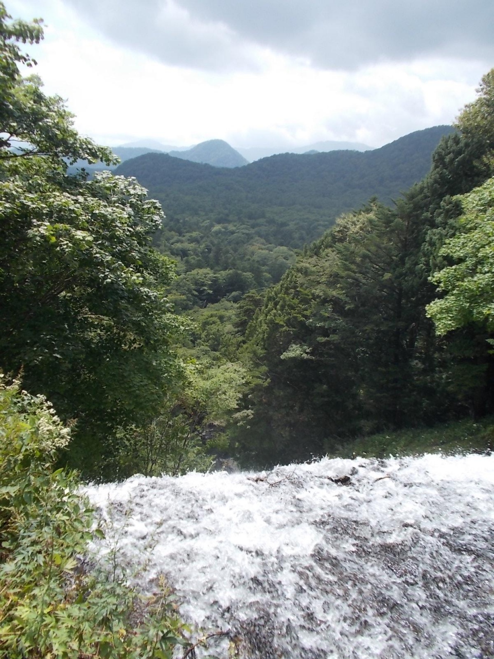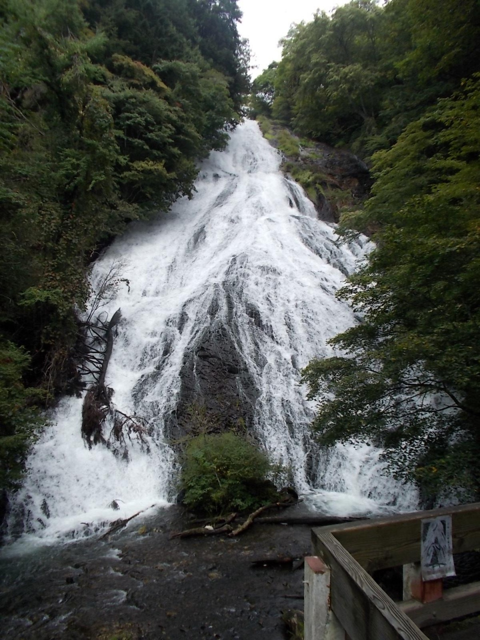 滝上からは、垂直に落ちていくような滝、遊歩道からは、急角度の岩の上を勢い良く流れ落ちる姿を木々の間から眺め、滝下の展望所からは、落差約50mを勢い良く流れ落ちる豪快で美しい滝を眺めることが出来ました。