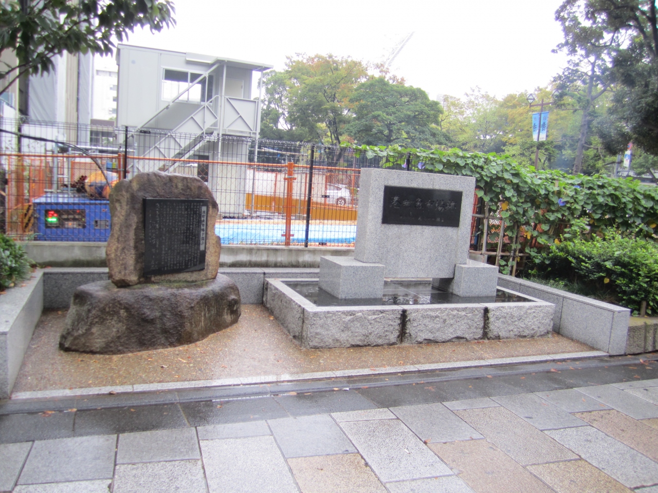 港町魚市場跡は、JR関内駅から横浜公園に向かう途中、駅から近いところにあります。1874(明治7)年にこの地に生鮮食品の市場を開いた当時は脇を川が流れていたそうです。ここに川があったことも市場があったことも想像つかない場所でした。