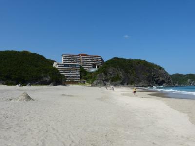 ホテルジャパン下田から南西に伸びる400mほどの白砂のビーチは美しく、隣接する多々戸浜に比べると空いていて、プライベート感があります。