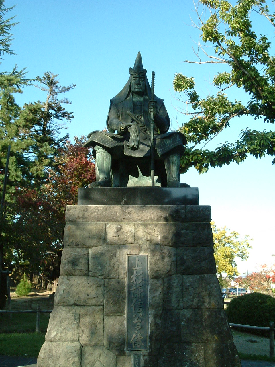 山形県米沢市の見どころのひとつ上杉神社のある敷地内に鎮座しておられます。上杉神社を正面にした参道をすこし歩くとその右手側にあります。上杉神社は上杉謙信をまつるために建てられた神社だそうです。教科書かなにかでみたことのあるような見覚えのある謙信像でした。