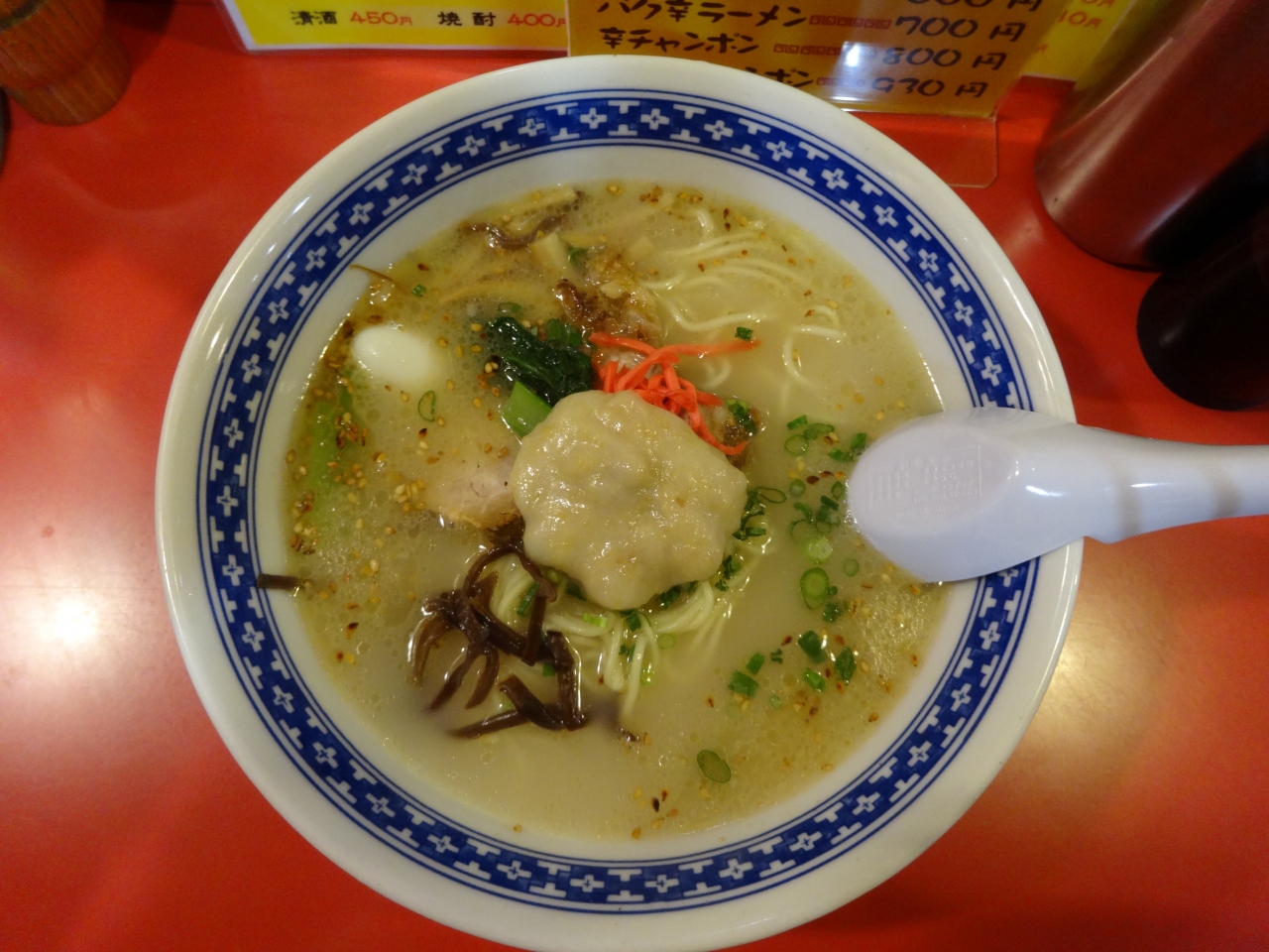ばくだんラーメンを注文しました。こってりでにんにくが効いててさらっと食べてしまいました。真ん中に、にんにくの形をしたペーストが乗ってるのがおもしろいです。長崎に行ったらまた来たいです。