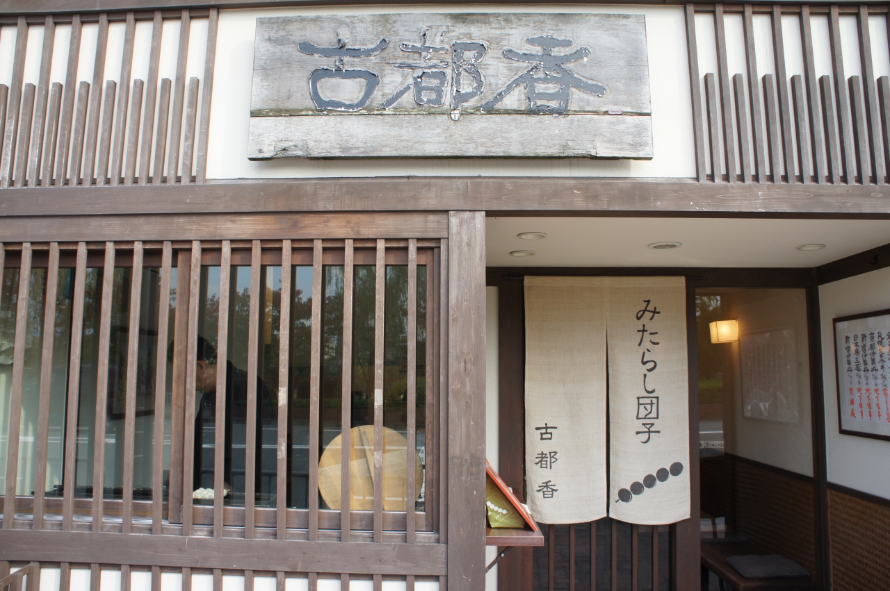 みたらし団子 古都香は、出町柳のすぐそば。ちょっと看板が風化していて読みにくいんですが、古都香と書かれています。昼飯を食べる時間がなくて、代わりに、ここでみたらし団子をパクリ。そういう意味ではあまり期待していなかったのですが、このだんご。タレがうまいですねえ。甘がらさにかすかに酸味が入っていて、それが味わいを深くしています。実は百貨店にもだしているというメジャーなお店のようですが、確かにそれだけのことはあるでしょう。