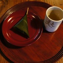 上がり框に腰かけて、麩饅頭をぱくり
