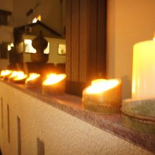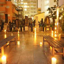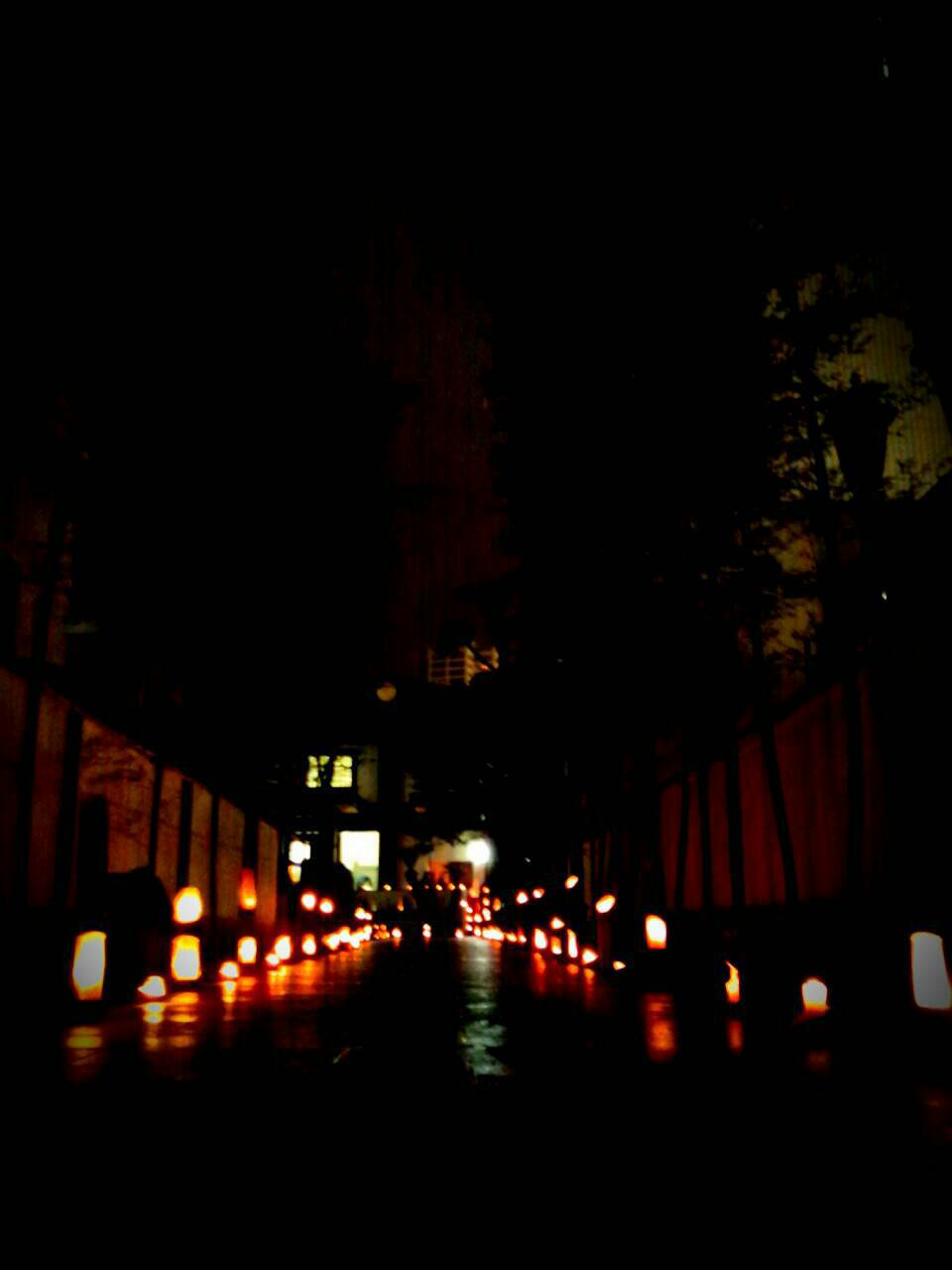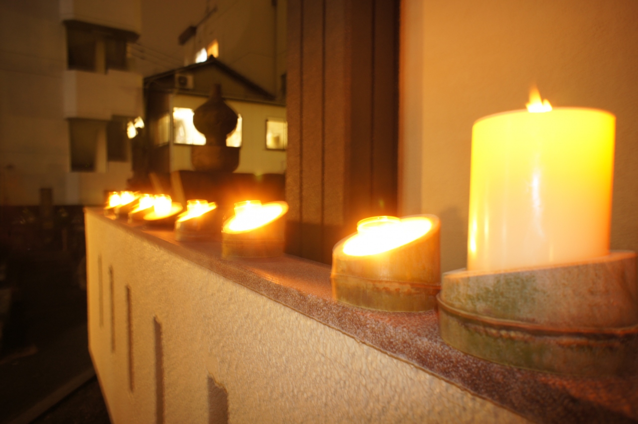 ろうそくの灯りは電気の光とは違う雰囲気があって、とても素敵な雰囲気でした。当日は雨あがりだったのですが、その濡れた石畳にあかりが映り、より一層きれいでした。