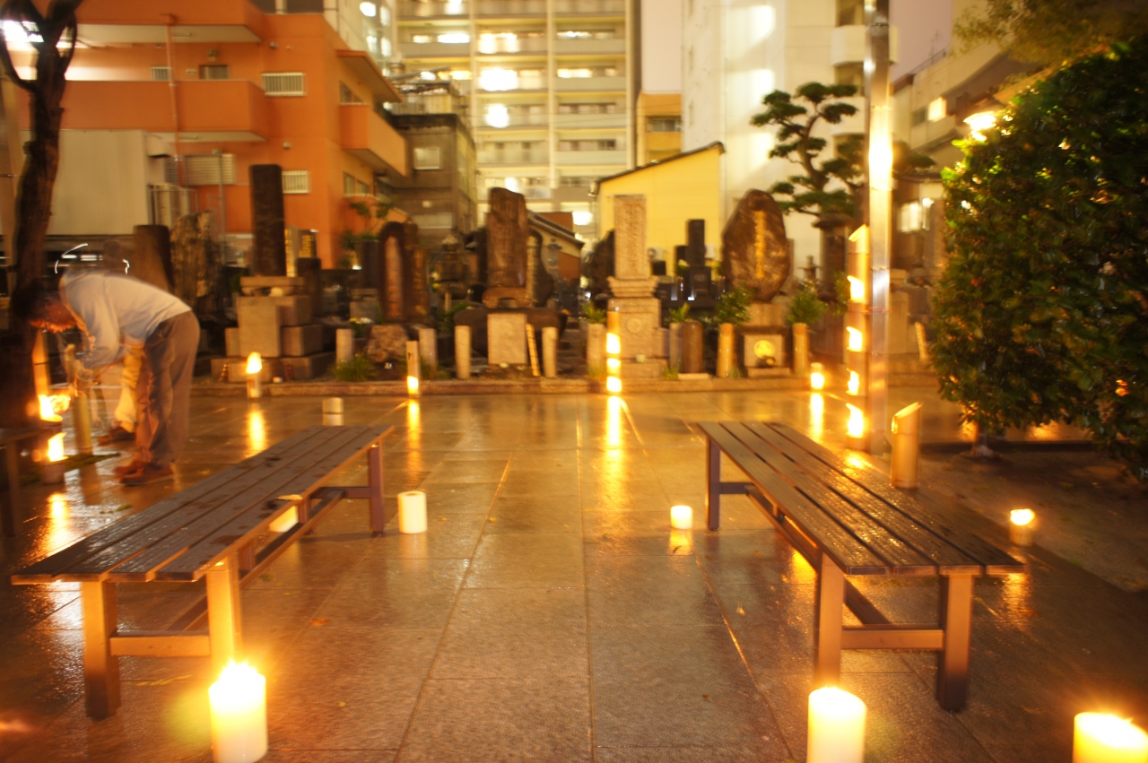 話題の黒田武将隊も駆け付けて写真撮影をしたり、読経と灯りの荘厳な雰囲気を味わったりと短い時間ながらとても楽しむことが出来ました。ライトアップされたお寺の雰囲気だけでもリフレッシュした気分になりました。また開催されるなら、行ってみたいです。