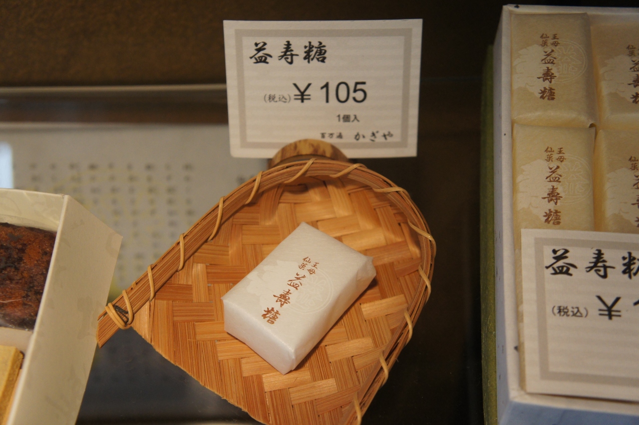 かぎや政秋は、百万遍の角にある大きな和菓子屋さん。益寿糖というお菓子をいただきました。やわらかい求肥にくるみの小さなかけらが入っています。ほのかに、ニッキも香るこの柔らかさは、羽二重餅に似ていますね。