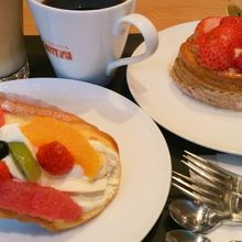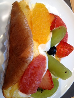 生地はふわふわ、生クリームも甘過ぎず、果物もたくさん入っています。果物の瑞々しい感じと少し酸っぱい感じがトータル的に味を甘ったるくなり過ぎないようにしてくれてます。